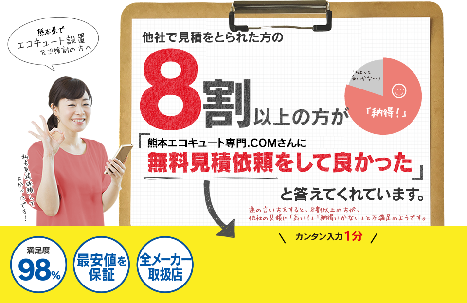 熊本エコキュート専門.comは、それぞれの家族構成に合った製品、施工をご提案しております。ここでは、代表的な