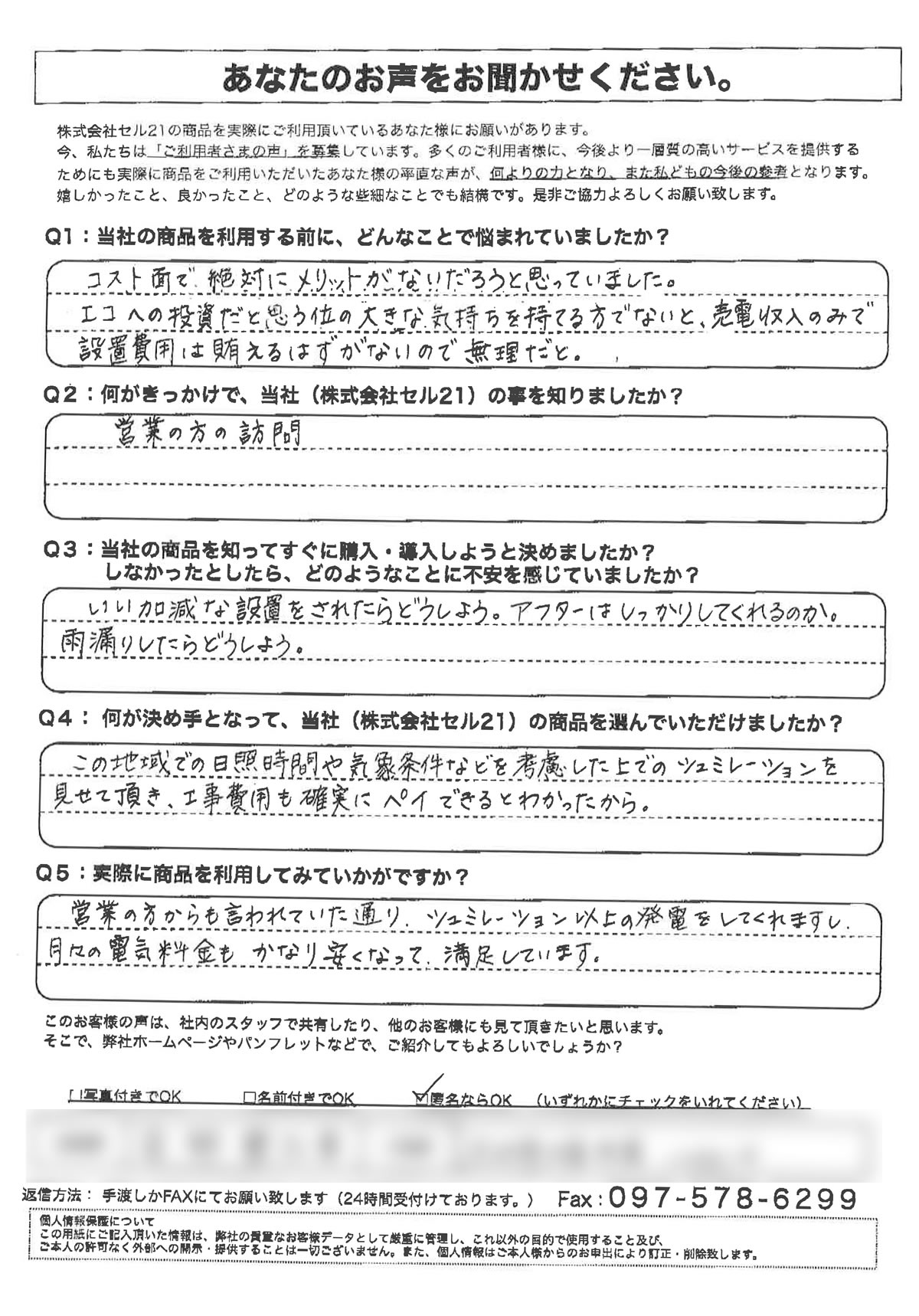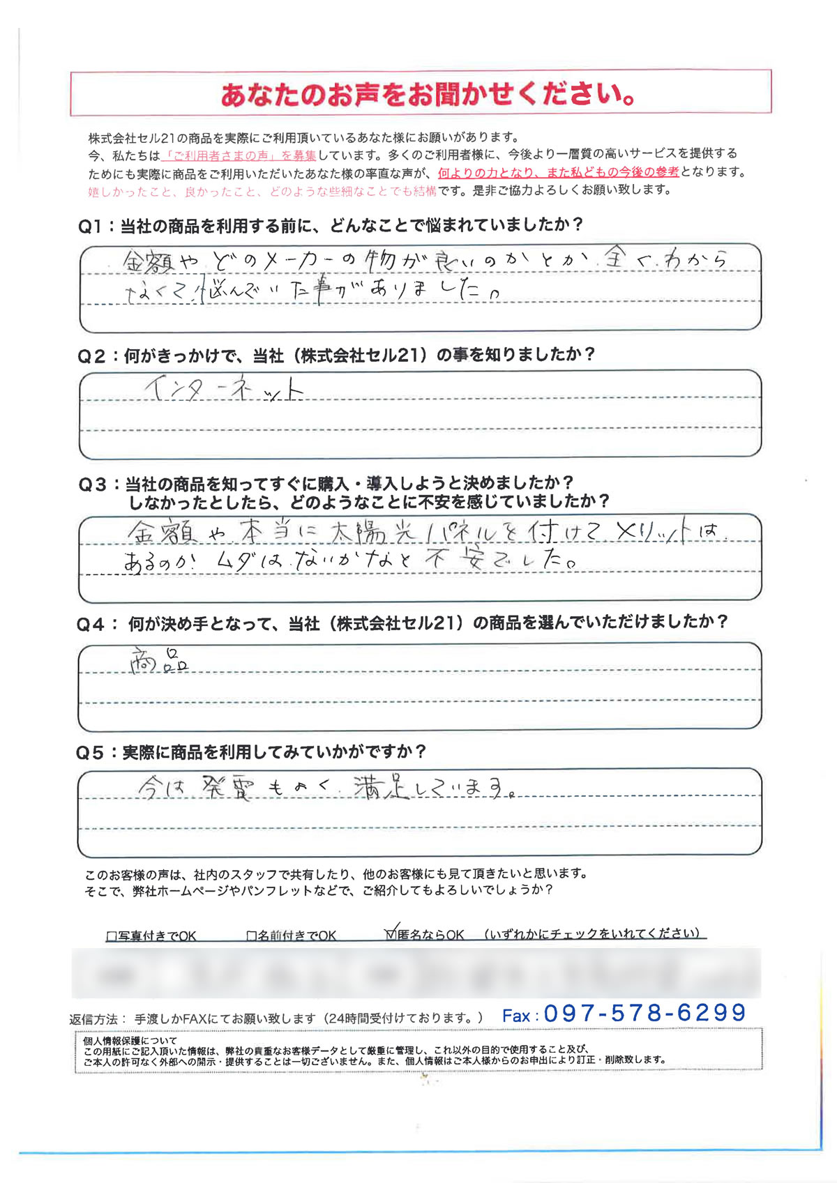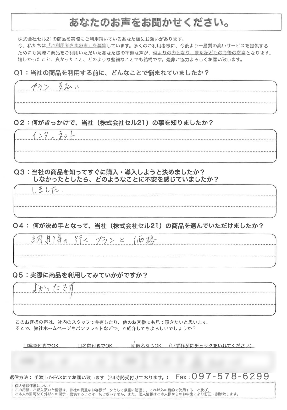 Cell21に実際に寄せられたお客様の声を紹介しています。