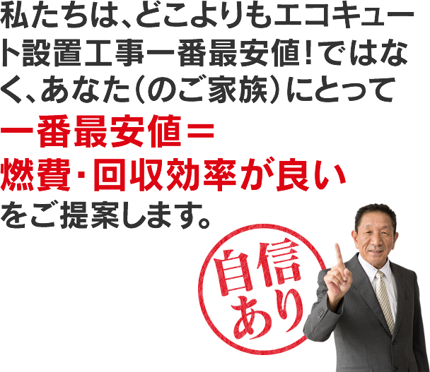 なんでも安ければよいというものではなく、あなたの生活スタイル・・・つまり、電気の利用スタイルや家族構成を考慮して、機種や施工方法を選び、あなたにとって一番安いことを実現することが大切なんです。